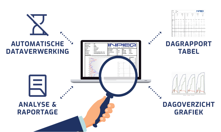 All data gathered by the INPIEQ DLS System can be examined, processed and presented with: